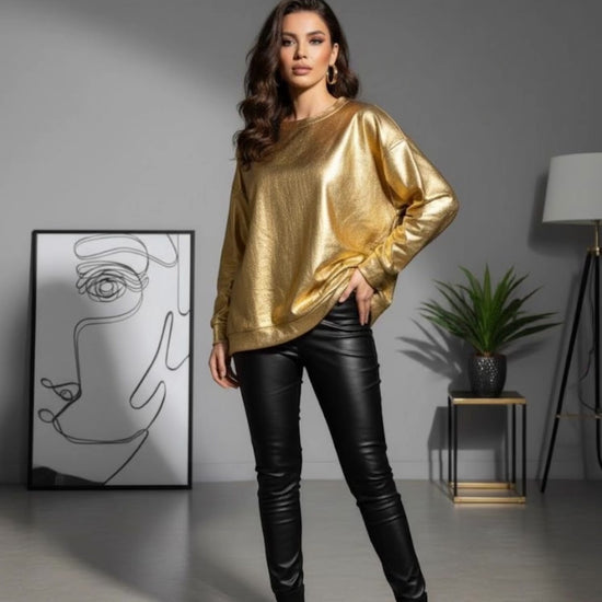 Χρυσή Φούτερ Oversized Metallic Gold | C&M