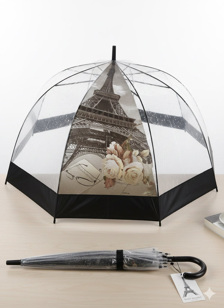 Διαφανής Ομπρέλα με Πύργο του Άιφελ - Ρομαντική Κομψότητα