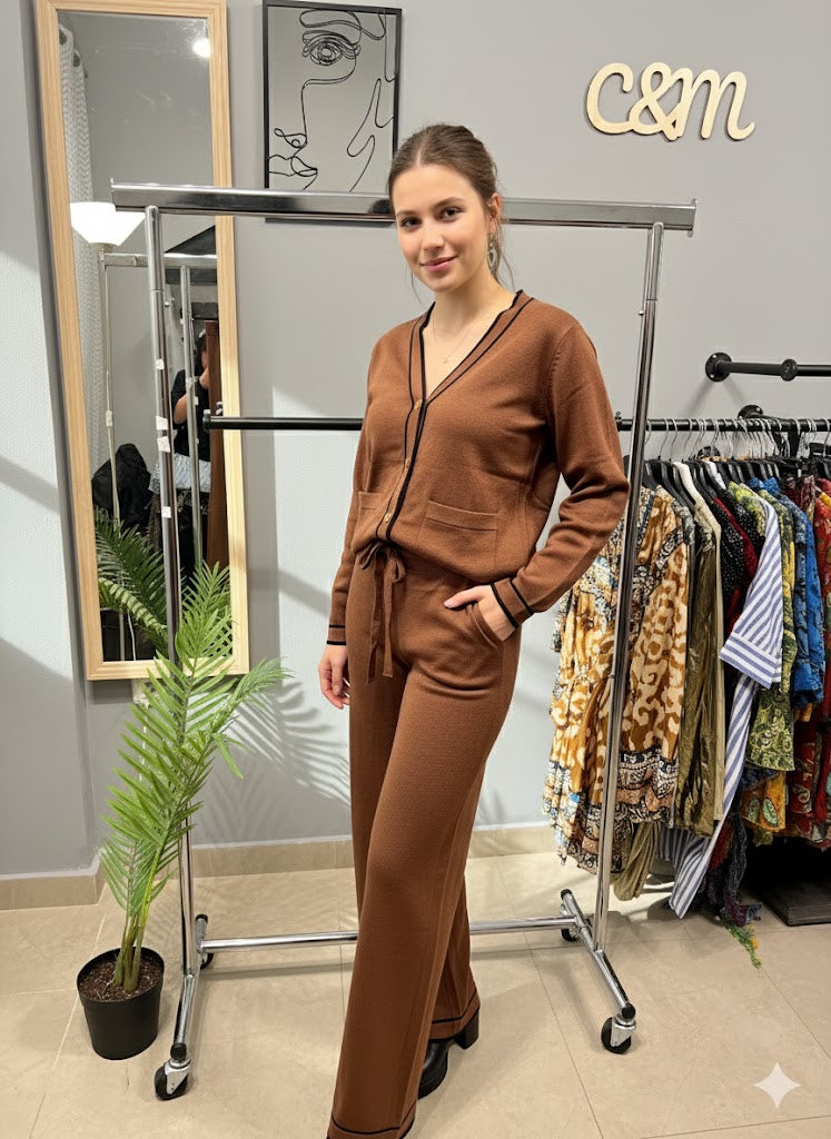 Καφέ Πλεκτό Σετ Ζακέτα & Παντελόνι | C&M