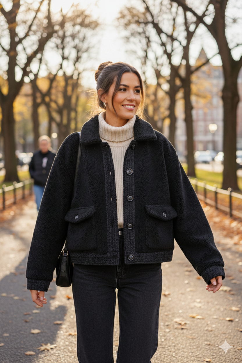 Μαύρο Sherpa Shacket - Ζεστή Casual Κομψότητα