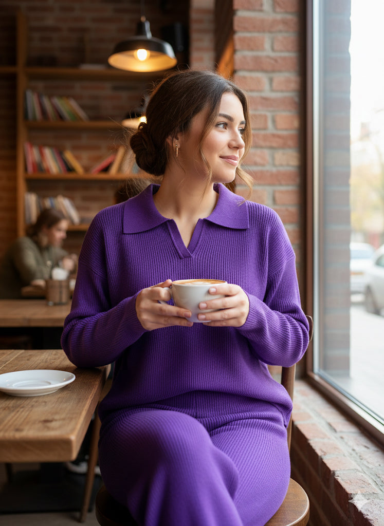 Μωβ Πλεκτό Σετ Loungewear - Έντονο Χρώμα και Άνεση