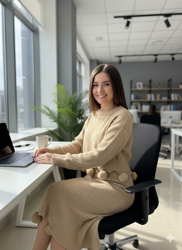 Ανακαλύψτε το πιο άνετο και στυλάτο σετ για τη φθινοπωρινή/χειμερινή σεζόν! Αυτό το εντυπωσιακό πλεκτό σύνολο σε ανοιχτό καφέ (μπεζ/ταμπά) χρώμα με αφράτες φούντες πομ-πομ συνδυάζει άνεση με μοδάτο στυλ.