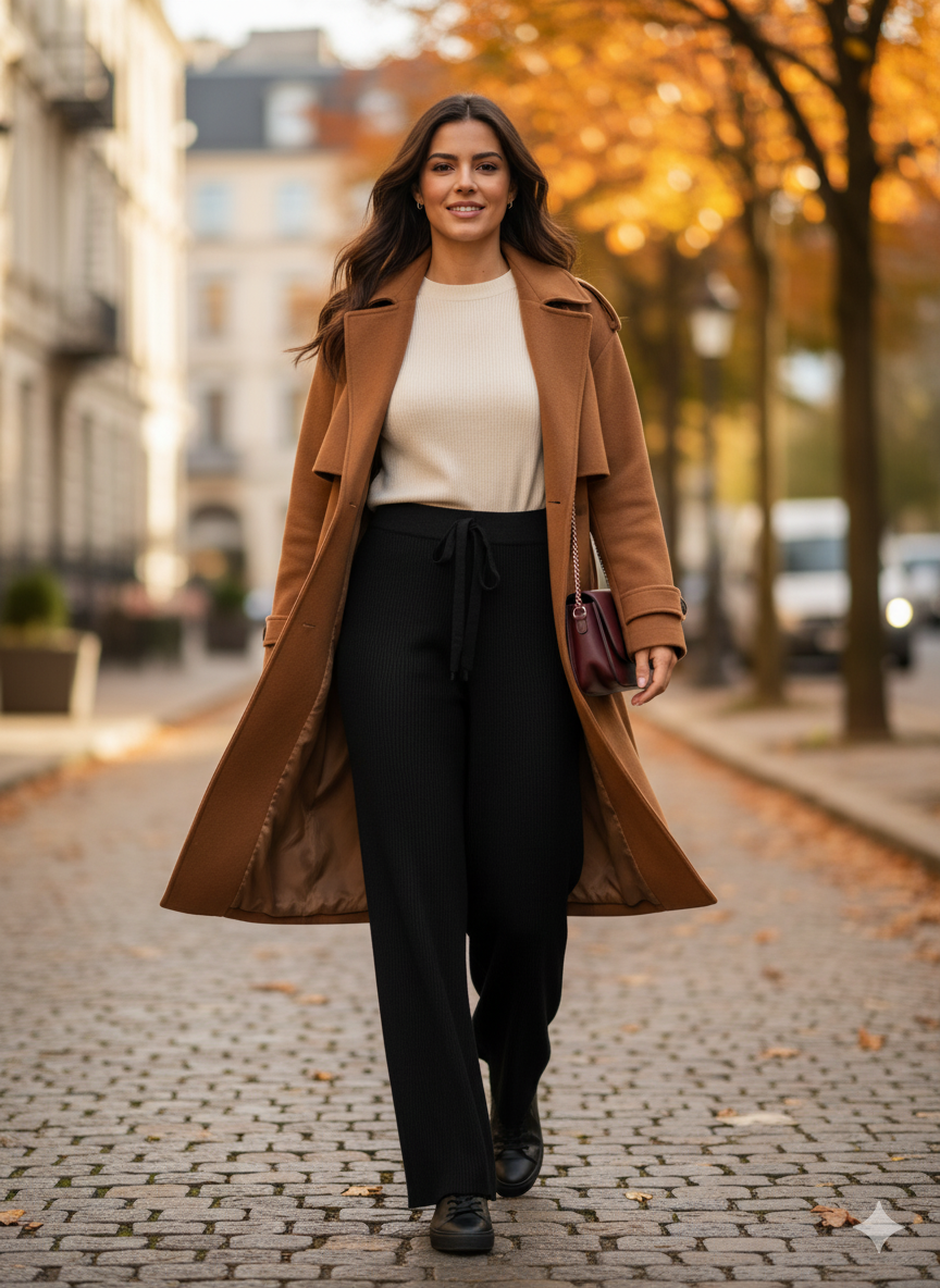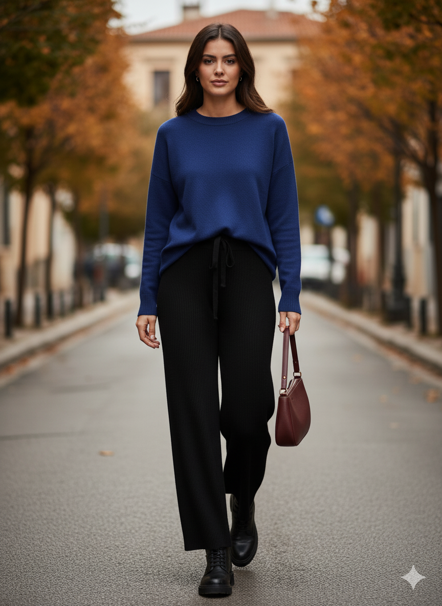 - Φαρδιά γραμμή (wide-leg/palazzo style) που πέφτει άνετα και κομψά