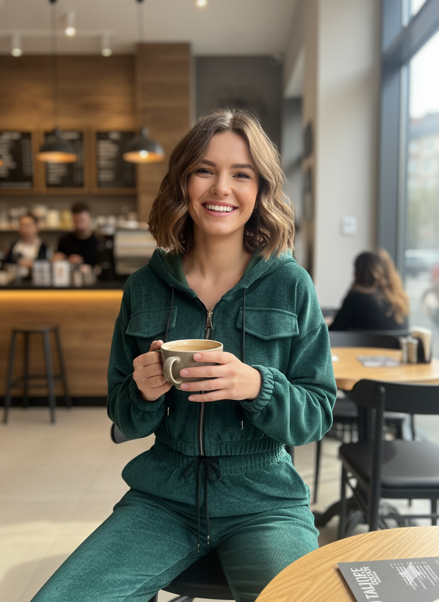 Ανακαλύψτε την απόλυτη πολυτέλεια στην άνεση! Αυτό το εντυπωσιακό σετ φόρμας/loungewear σε βαθύ πράσινο χρώμα με βελούδινη/κοτλέ υφή είναι η τέλεια επιλογή για όσες αγαπούν το luxe, comfortable στυλ.