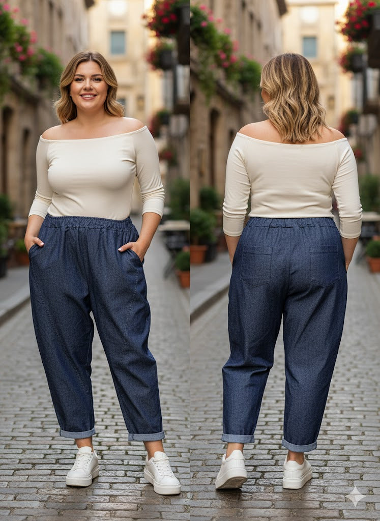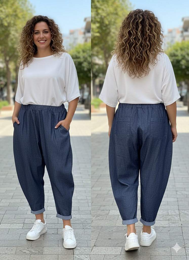 Ανακαλύψτε το πιο trendy παντελόνι της σεζόν! Αυτό το εντυπωσιακό τζιν παντελόνι σε στυλ balloon/barrel συνδυάζει τη μοντέρνα φαρδιά γραμμή με την απόλυτη άνεση. Ιδανικό για casual, καθημερινές εμφανίσεις με στυλ.